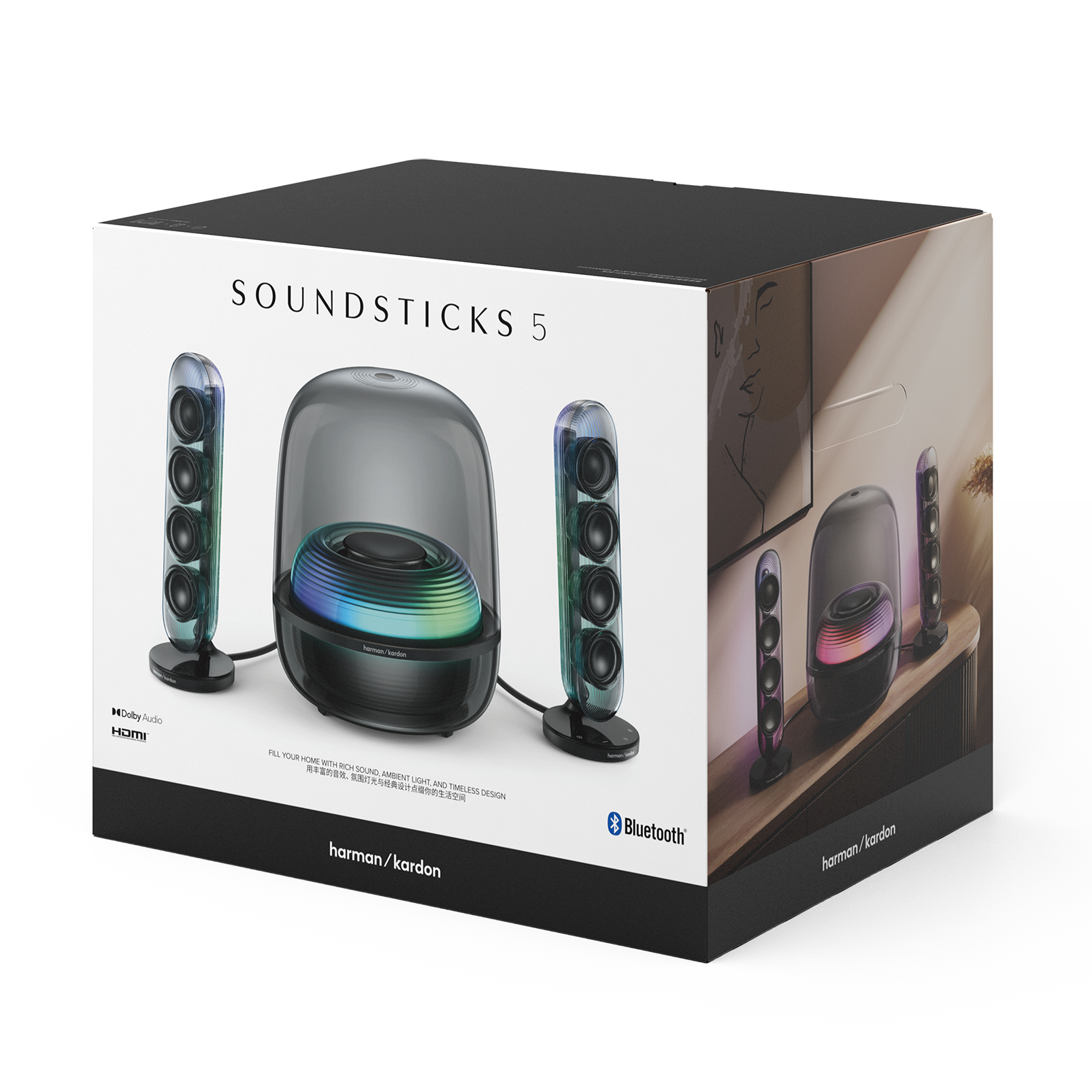 SoundSticks 5 جدیدترین نسل از سری افسانهای SoundSticks هارمن کاردن است که با حفظ DNA طراحی شفاف و آیندهنگرانه، از نظر قدرت صدا، نوع اتصال و معماری صوتی یک جهش جدی نسبت به نسلهای قبلی محسوب میشود. این محصول یک سیستم صوتی 2.1 کاناله با تمرکز بر کیفیت صدای بالا، طراحی دکوراتیو و اتصال مستقیم به تلویزیون و دستگاههای هوشمند است.