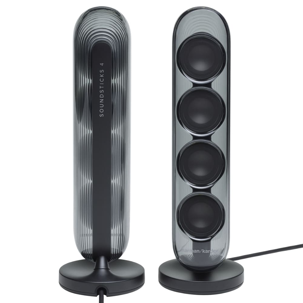 اسپیکر رومیزی هارمن کاردن قادر است با تکنولوژی 4 درایور در هر اسپیکر ستلایت صدایی با قدرت 140 وات RMS تولید و پخش کند. اسپیکر بلوتوثی Harman Kardon SoundSticks 4 با پاسخ فرکانسی 40 هرتز تا 20 کیلوهرتز، علاوه بر طراحی خیرهکننده، کیفیت صدای استثنایی نیز ارائه میدهد.