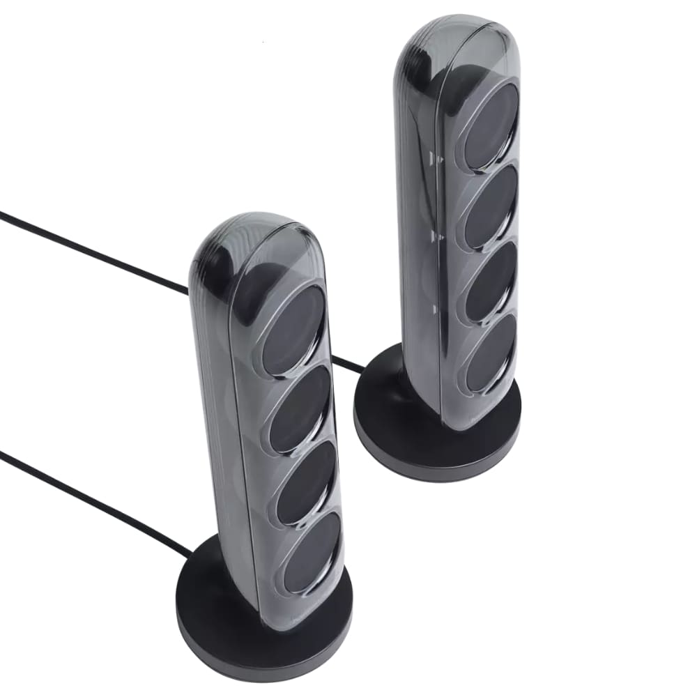 اسپیکر Harman Kardon SoundSticks 4 با طراحی نوآورانه و زیبای خود، جلوهای مدرن به هر فضای داخلی میبخشد. این سیستم صوتی شامل یک سابووفر و دو اسپیکر ماهوارهای است که با طراحی گنبدی شکل و شفاف خود، هماهنگی بینظیری با دکور منزل ایجاد میکند. سابووفر با ابعاد 231x276x231 میلیمتر و اسپیکرهای ماهوارهای هر کدام با ابعاد 271x84x84 میلیمتر، نه تنها ظاهری جذاب دارد، بلکه با سطح داخلی مواج خود، زیبایی موسیقی را منعکس میکند.